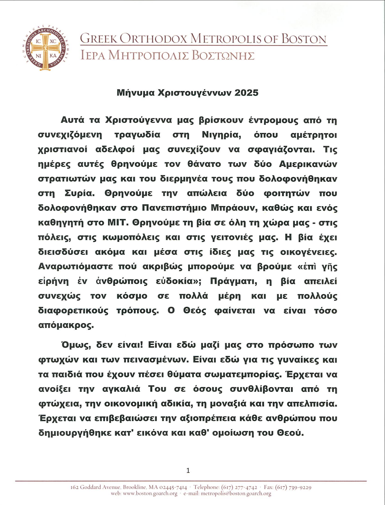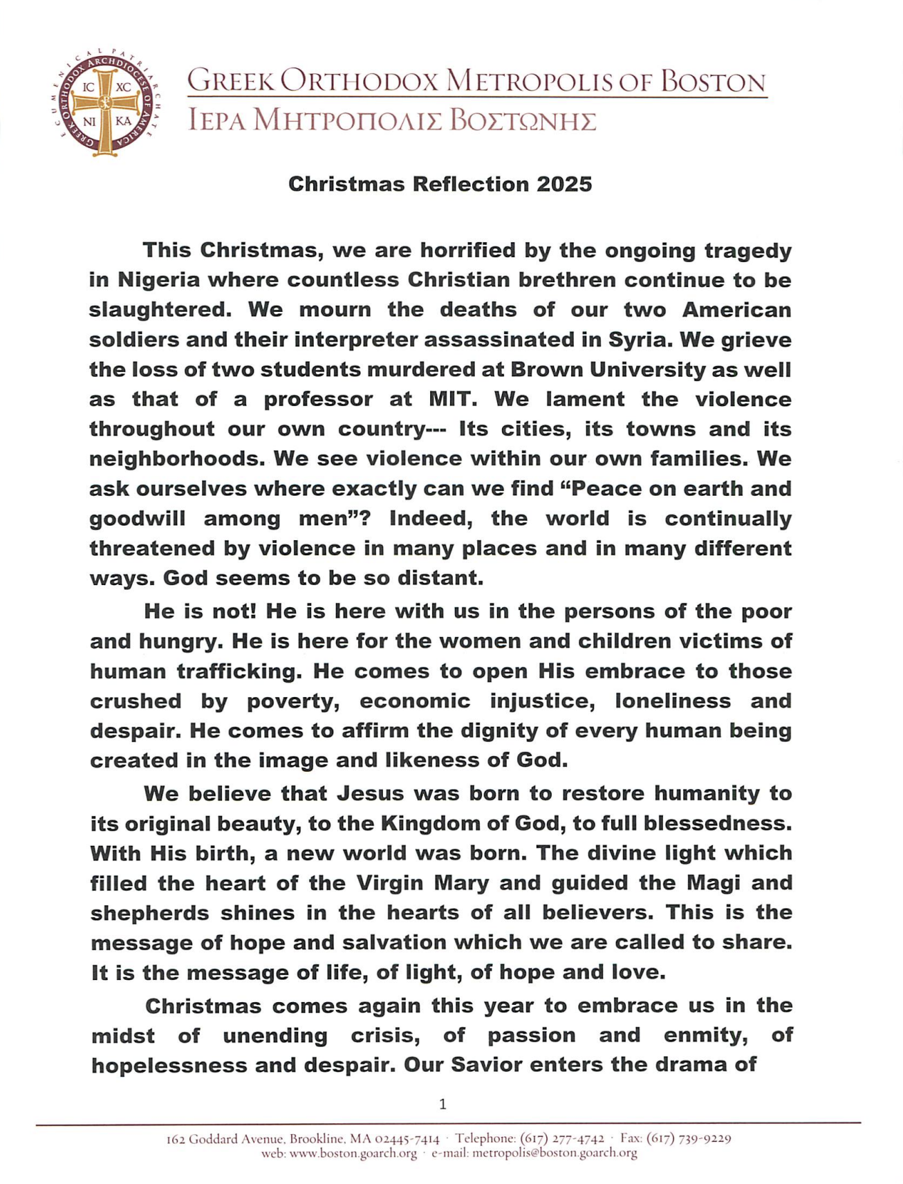 CHRISTMAS REFLECTION FROM HIS EMINENCE, METROPOLITAN METHODIOS