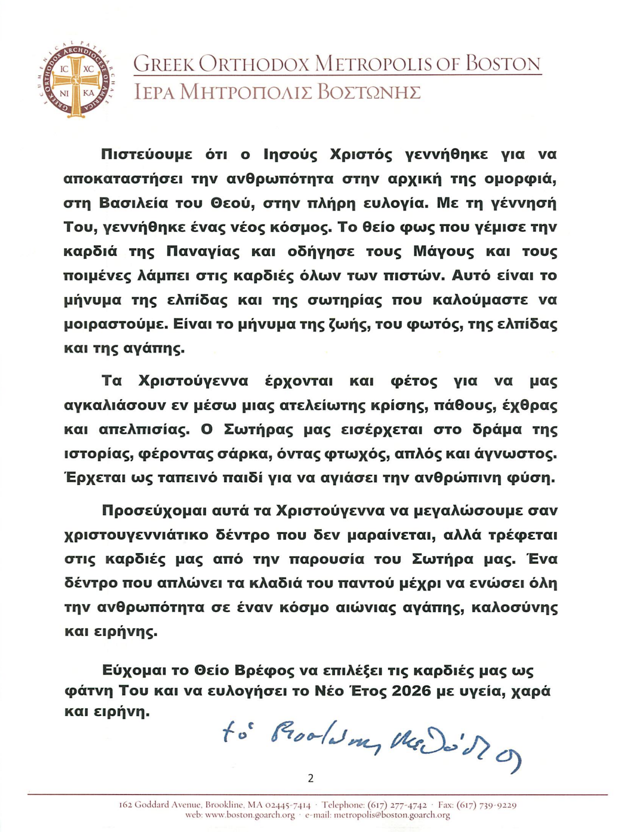 CHRISTMAS REFLECTION FROM HIS EMINENCE, METROPOLITAN METHODIOS